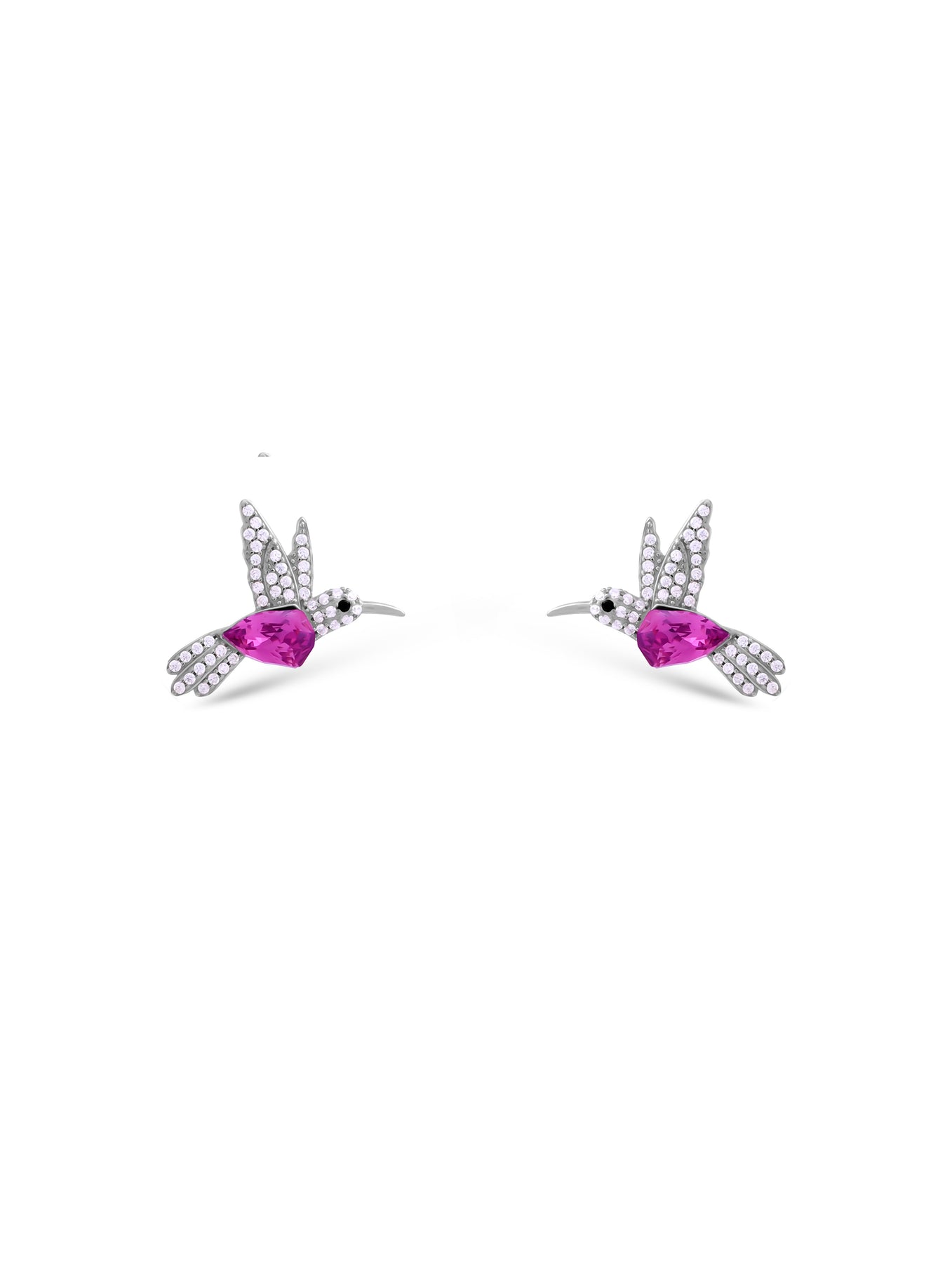 Featuring a bright pink gemstone at the center and delicately encrusted wings, these earrings capture the beauty and grace of a hummingbird — symbolizing joy, positivity, and good energy.